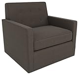 Cozy enough for the nursery but stylish enough for the living room. Custom made in the USA of sustainable hardwood that is certified by the Sustainable Forestry Initiative (SFI), which means the wood has been grown and harvested in a responsible manner. Handmade single-wrapped foam cushions with rayon, polyester and cotton blend upholstery. The Thompson Glider is designed with midcentury modern, clean, straight lines, covered button tufting, track arms and welt detail. A true classic. Recycled steel glide mechanism both glides and swivels. Measures 31 x 33 x 31-inches. Coordinates with DwellStudio's Standard Ottoman.